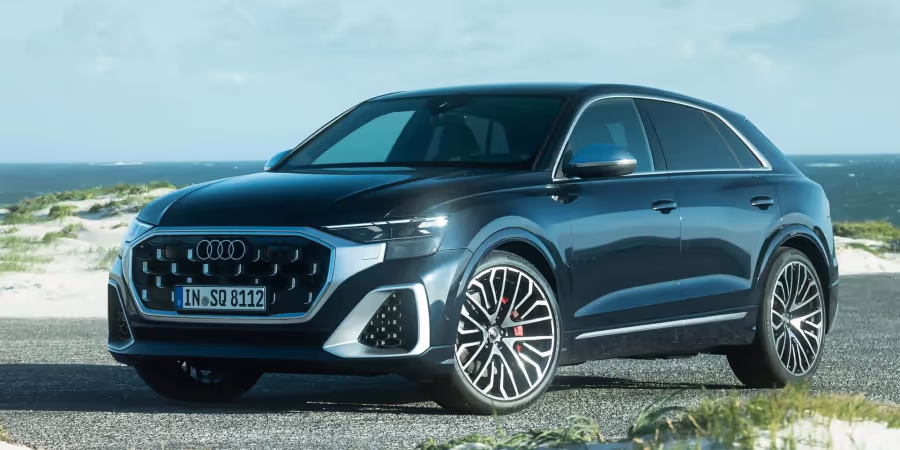 Die Änderungen am Äusseren des SQ8 konzentrieren sich stark auf visuelle Verbesserungen. Eine schärfere Scheinwerferanordnung rahmt nun ein verfeinertes Kühlergrill-Design ein, während eine überarbeitete Frontschürze für zusätzliche Aggressivität sorgt.
